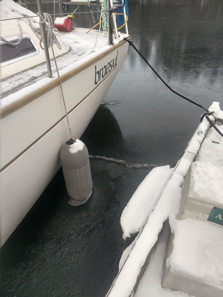 Reminiscent of living aboard at Elliott Bay marina. Motoring over to the pump-out in the wind, snow, ice, rain. Seemingly all at once. Thank goodness they didn’t turn it off.