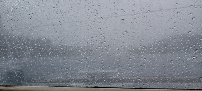 Walt and I have been reading, napping, eating well, and writing throughout the most recent three days. Despite sometimes swinging rapidly around her anchor, amplifying the wind’s moans via her rigging, rolling and swaying a bit as little white-capped waves shove her about, and startling us with her anchor chain’s popping and snapping as it moves about on the sea floor, Braesail has been fine and has kept us safe and dry with little effort on our part, though Walt has had to do some adjusting of the rope “bridle” that takes up the anchor chain’s weight and tension and thus protects the windlass mechanism (which raises and lowers the anchor and chain). I’m thankful for the shelter and “down time” we have had, but will be glad to collect a few drops of sunlight after all the rain!
