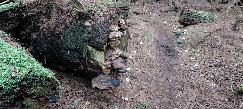 Once at the site of the buildings and present hot pool, on the dry side of the island where there are few trees and lots of sedge and salal, we decided, since it was a very cold day and we needed to stretch our legs and there were a lot of people in the outdoor pool already, to walk on up the hill, past the site of the older pool, and down to the beach and the site of another mostly-defunct spring. In addition to the beautiful pebbles on the beach, we observed many powdery-white clam shells (both sides of the trails to the various Watchman sites are marked using them), shimmering abalone shells, and cream-colored barnacles, resembling tiny volcanoes, erupting from the surfaces of glossy black volcanic sea stones.