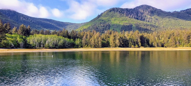 We returned to Thurston Harbour at the end of a chilly, cloudy, thought-provoking Thursday and again enjoyed its peaceful hospitality. We didn’t see foraging raccoons at the margins of the bay on this occasion, as we had on previous mornings, but sunlight flooded the harbor and bade us farewell as we concluded the Moresby Island portion of our time in Haida Gwaii.