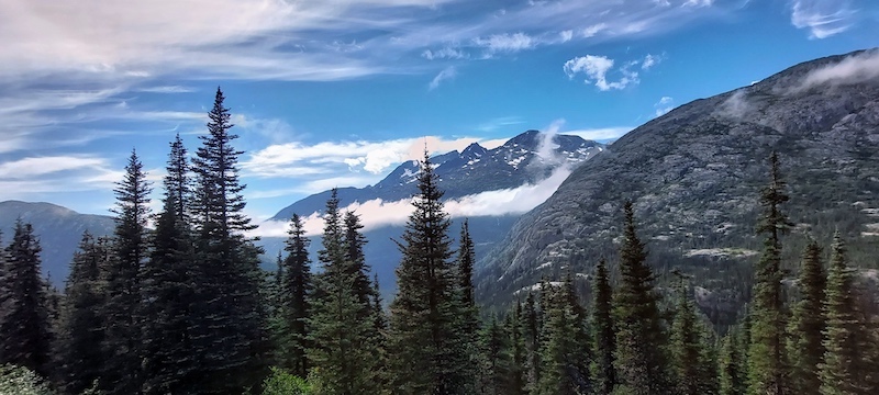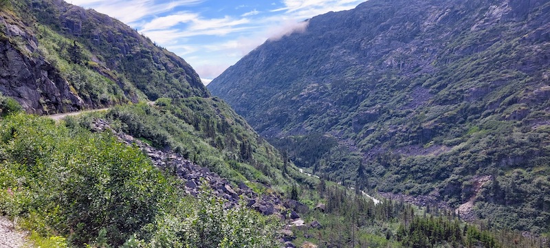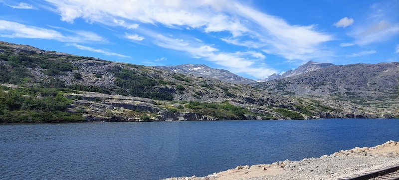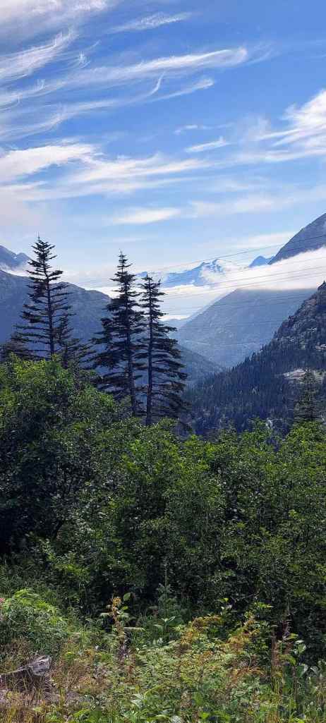 We again sat on the port side of the ferry, this time at a table in the bow section, but did not venture out to walk around the lower decks or to sit outside on the top deck! We shared our table with a couple from the Netherlands during the trip from Skagway to Haines, and then with a couple from Idaho during the ride from Haines back to Auke Bay, and had interesting and delightful conversations with both.