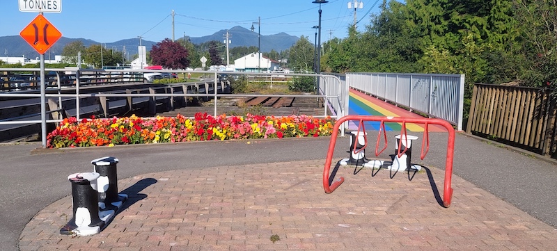 Beautiful begonias near the “rainbow bridge” in the Cow Bay section of Prince Rupert on a fine afternoon