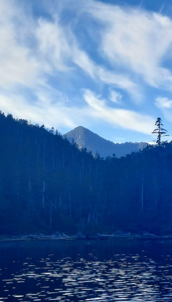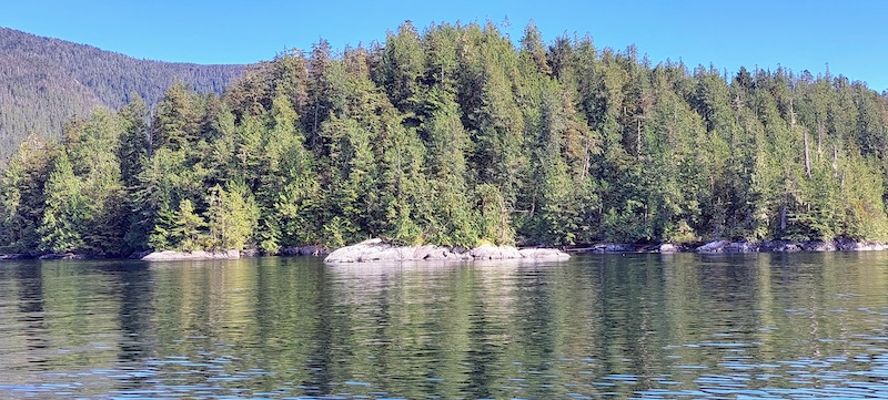 the skies brightened and we had a beautiful sunny trip eastward through Meyers Passage, then north between two large islands and then south between two until we arrived at Klemtu. What a treat after all the grayness and rain!