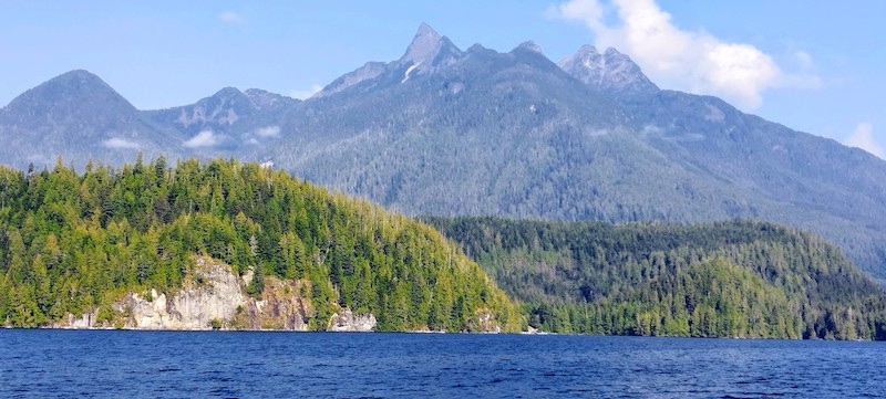 as we viewed the nice-looking resort in Little Nimmo Bay, and as we admired the towering granite bluffs lining the sound.