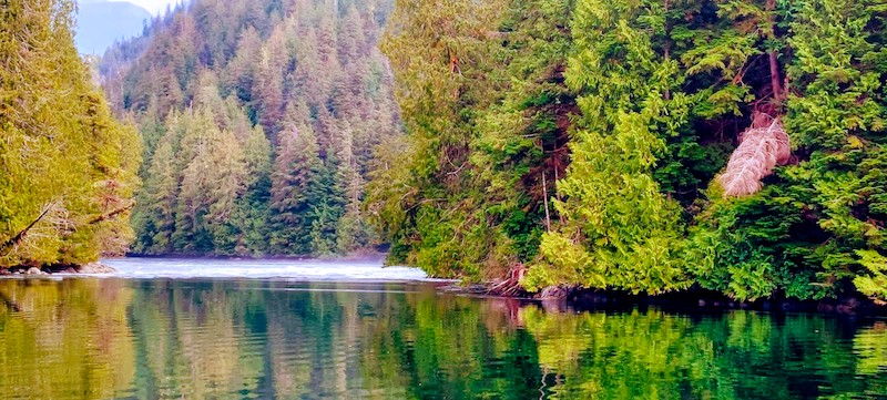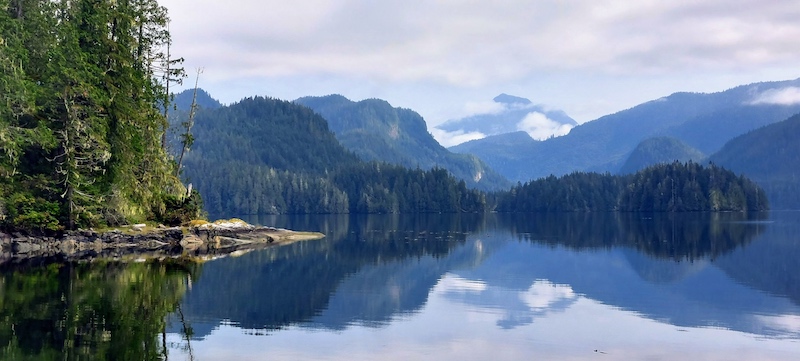 and then spent a beautiful, sunny afternoon motoring all the way to the end of MacKenzie Sound and then back to a small nook behind Turner Island that we had explored briefly in passing earlier in the day.