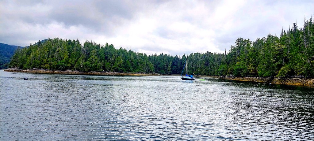 Unfortunately, a visit with our friends, Tom and Michelle, didn’t work out, and so, after enjoying the great “breakfast burritos” prepared by Hans, Braesail and her crew departed from Hot Springs Cove at about 10:30 am under gray skies, and were happy that the rain had stopped! During the morning, Hans received confirmation of the work assignment that would necessitate his departure from Braesail’s crew in Tofino; we were not surprised but felt very sad.