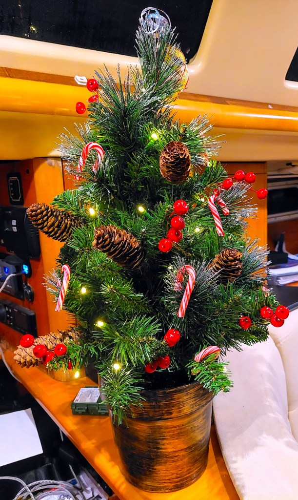 The later service ended at about 12:30 am, and Martin and Karen went off on foot to find an Evo car while Walt and I sat on a bench outside the Cathedral and enjoyed the mild night spangled by the neighborhood’s twinkling holiday lights. It took awhile to locate a car, and we didn’t clamber back onto the boat until nearly 2 am. It didn’t take us long thereafter to find our way to bed after a lovely day.