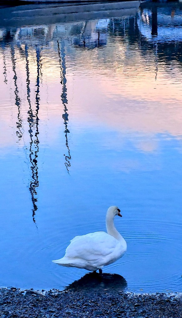 Here I saw an elegant white swan drifting along near the beach and took a few pictures of the beautiful bird