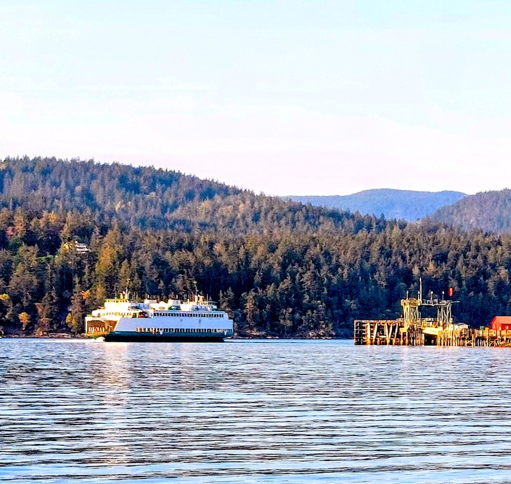 We caught up on email and German lessons, watched some videos on Walt’s laptop, and found our way to bed on a chilly night. I enjoyed observing a late-departing ferry as it drifted across the ebony water, its lights twinkling like jewels adorning a floating fairyland castle and being reflected from the surface of the sea like golden stars blinking back at the silvery ones in the sky above.