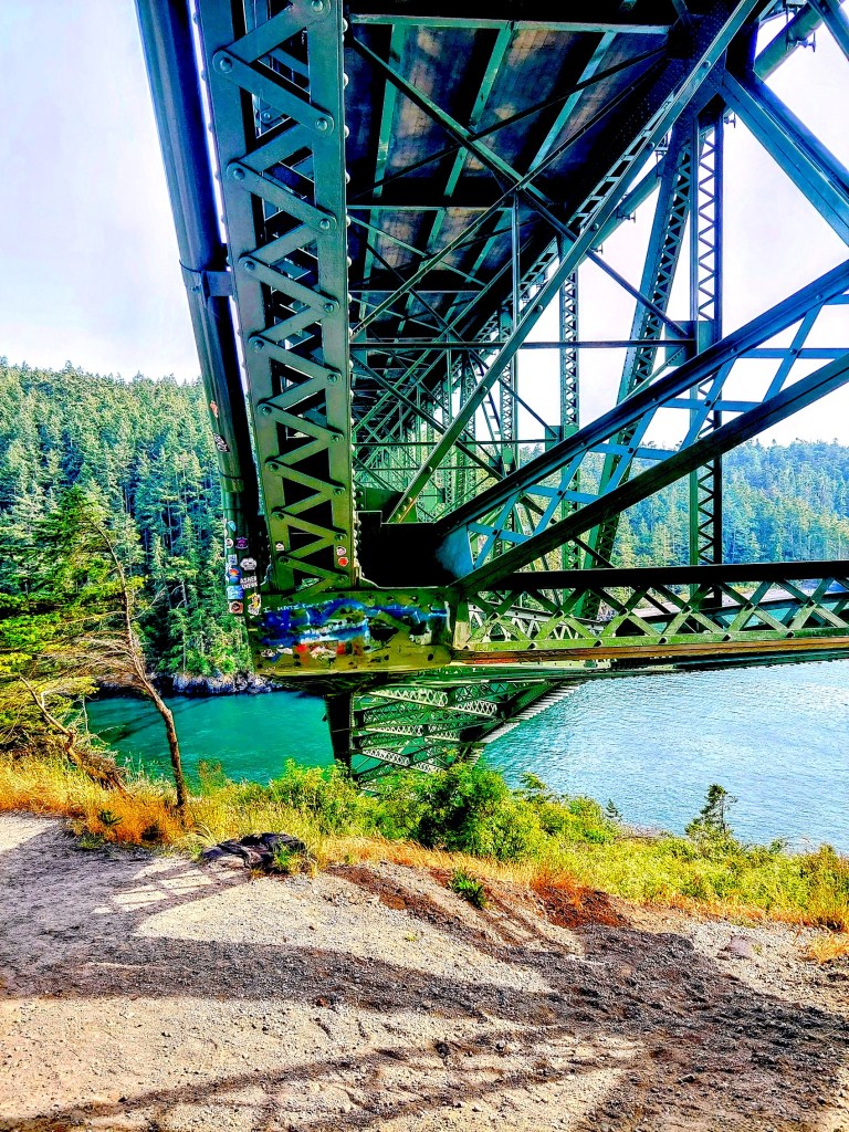 Rhoda and Dennis decided to return to their home in Edmonds (about 17 miles southwest of Everett) after our stop at the viewpoint, and the rest of us drove to and parked near the bridge over Deception Pass, another spot from which breathtaking views over swirling water far below can be photographed.
