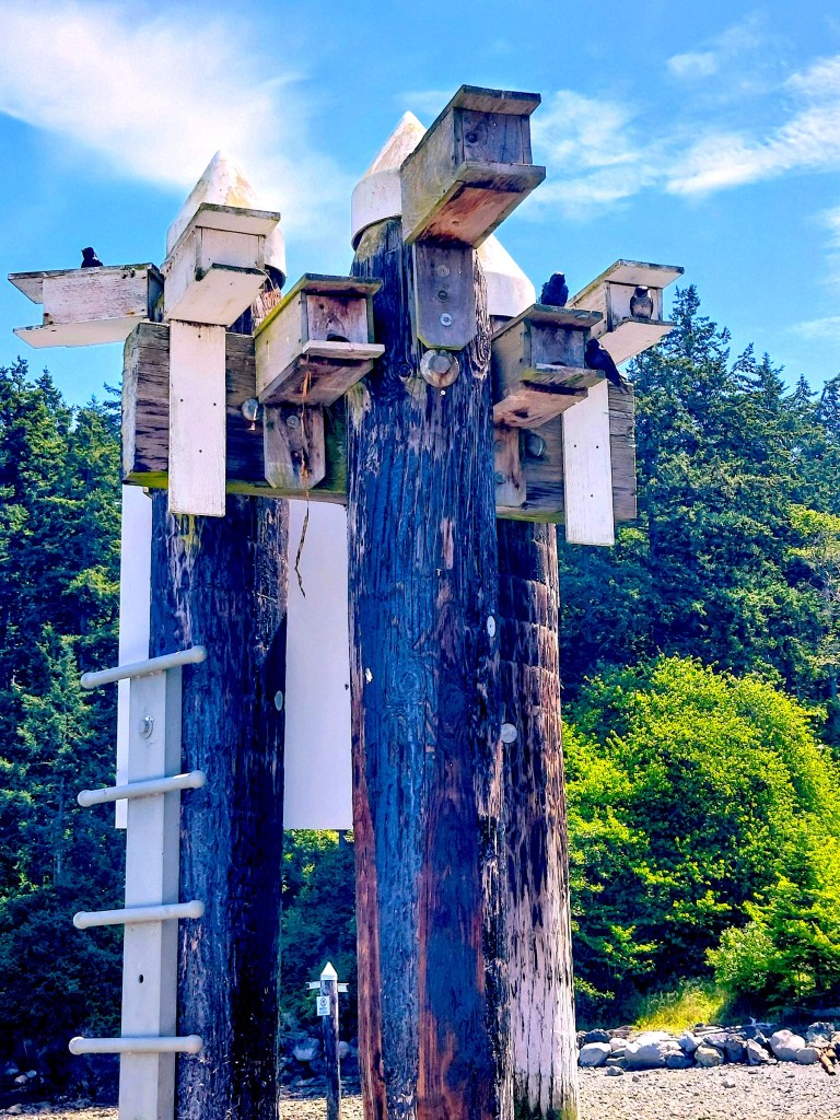 Several birdhouses perched atop the dock pilings, and their inhabitants entertained us while we ate lunch and took some time to rest before sailing back to Anacortes in a gentle breeze.