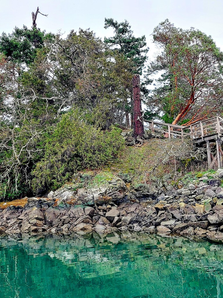 A calm, chilly, gray, rain-free day allowed us time for nice hot showers (Braesail has two “heads,” each of which contains a toilet, sink, and shower), reading (Walt), and catching up on blog-writing (me) while listing to more gorgeous Christmas music. Walt spent a bit of time fastening the wandering microwave much more securely into its niche, and in mid-afternoon I took a long and pleasant walk around the marina’s docks beneath thick pewter skies. I enjoyed looking at the many boats in Blue Heron Basin, and watched a parade of some 25 Canada geese gliding silently through the shallow water near the shore, of which quite a lot was visible at low tide. We napped, did our daily online German exercises, and caused more left-overs and treats to disappear during and after supper, and by midnight we were ready to conclude our day, having made plans to travel by bus to Victoria on Sunday to attend an organ recital at the cathedral.